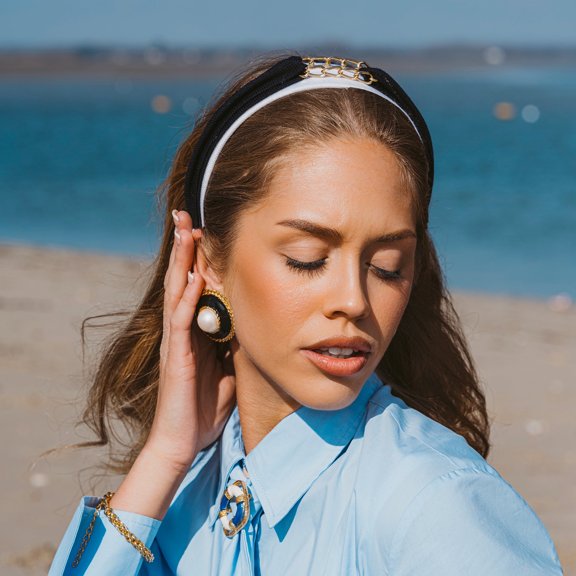 Loop Chain Hairband Navy/Tan