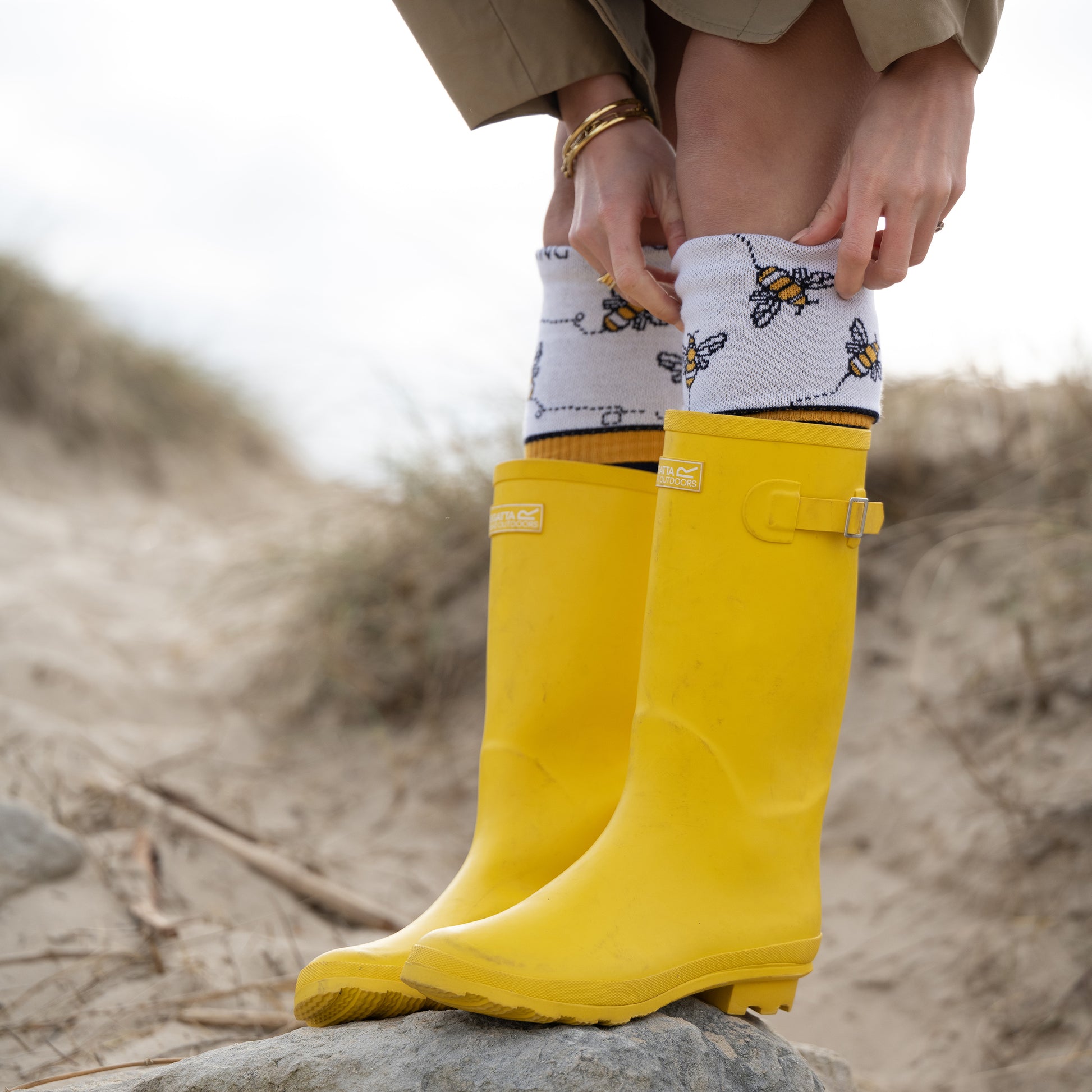 Inspired by the strength and elegance of the queen bee, the Queen Bee Socks are a luxurious tribute to nature’s most regal creature. Designed in our Nottingham studio for the founder’s daughter, Bea, these socks are crafted from premium merino wool for softness and warmth. Featuring a cushioned foot for added comfort, they’re perfect for all-day wear. The design reflects both a playful and sophisticated spirit, offering a charming yet refined touch to your wardrobe.