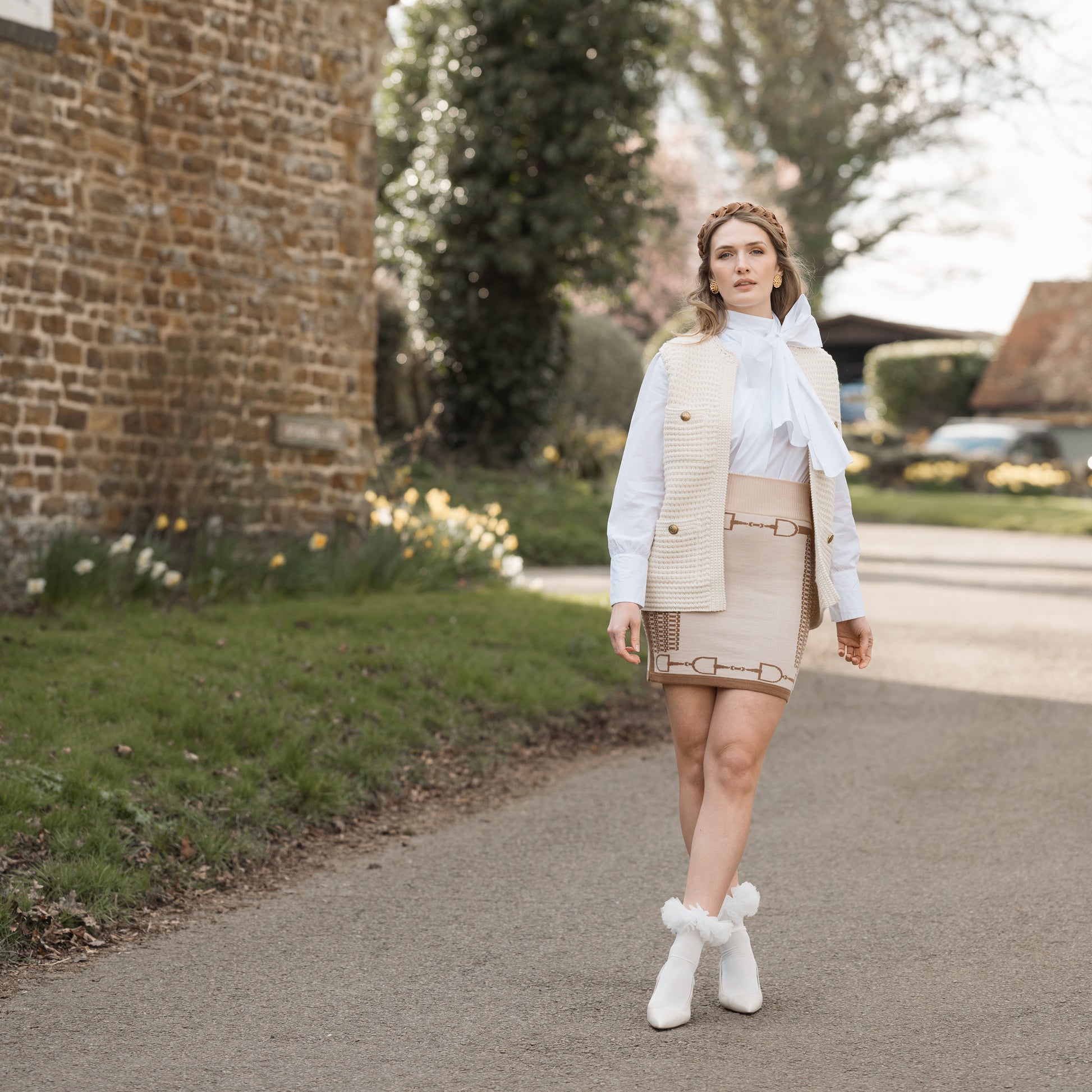Elevate your wardrobe with the Waring Brooke Snaffle Skirt – a refined blend of British craftsmanship, equestrian-inspired fashion, and sustainable design. Lovingly made in the UK using 100% extra-fine Merino wool, this elegant knee-length skirt is the epitome of luxury countryside style.